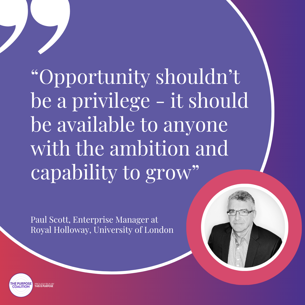 Paul believes that opportunity shouldn’t be a privilege and that’s why organisations like Royal Holloway should be committed to breaking down barriers to opportunity: